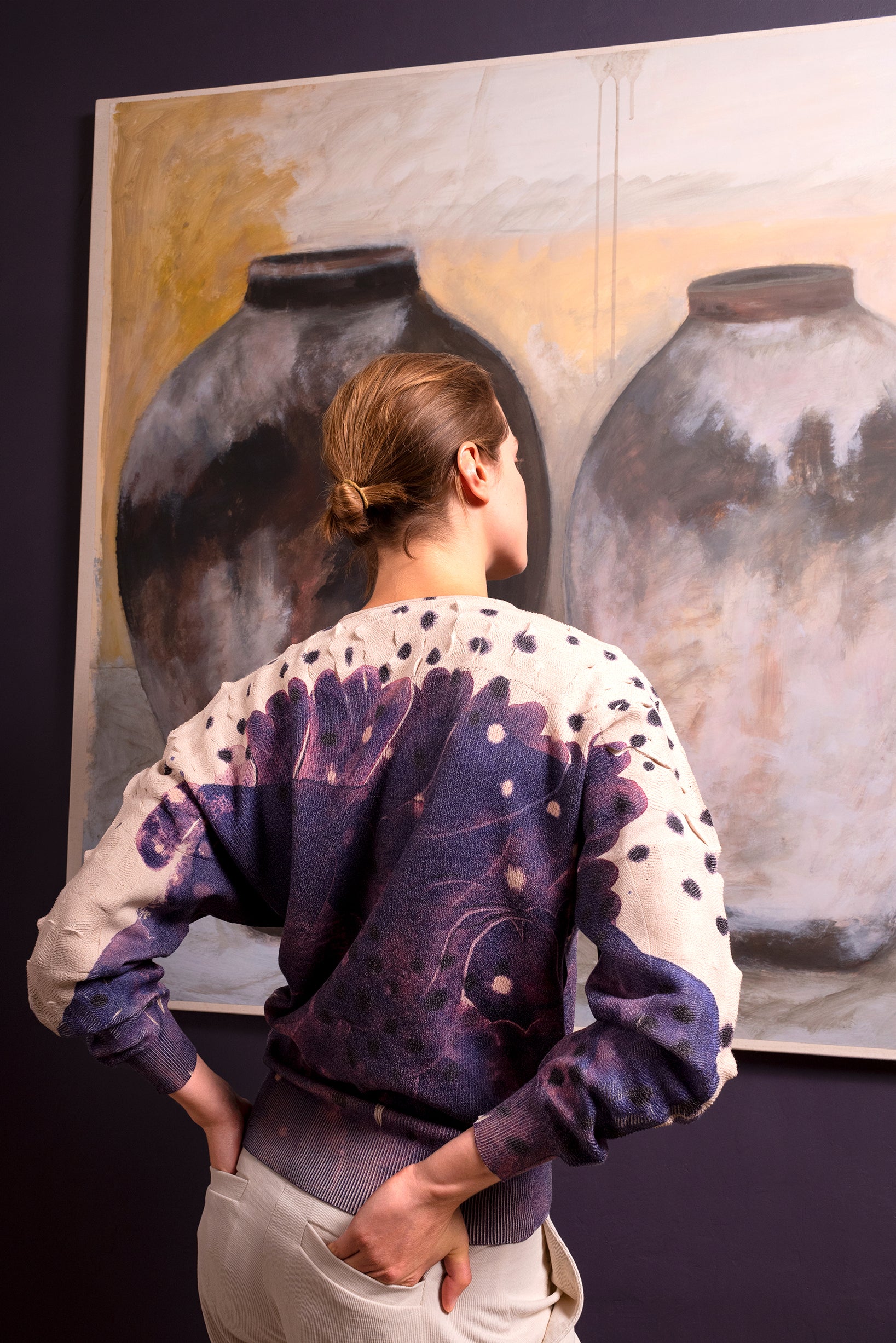 The watercolor designs, inspired by our baroque universe, are placed on a sporty-feel mesh combining comfort, technicality and recycled polyester, combining creativity and responsibility.